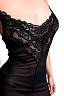 Черная комбинация изготовлена из полупрозрачной ткани и декорирована кружевными вставками. Комбинация притягательно облегает тело и подчеркивает все соблазнительные изгибы.