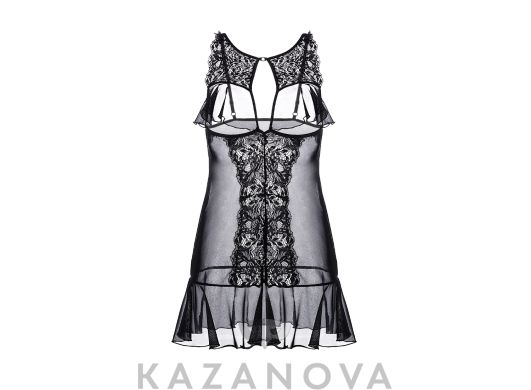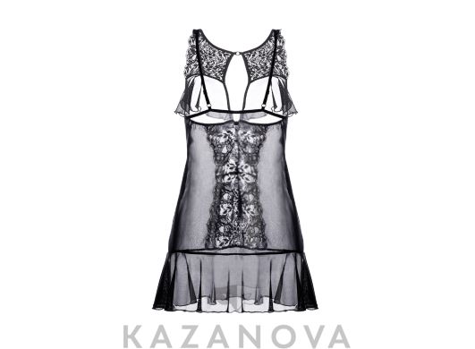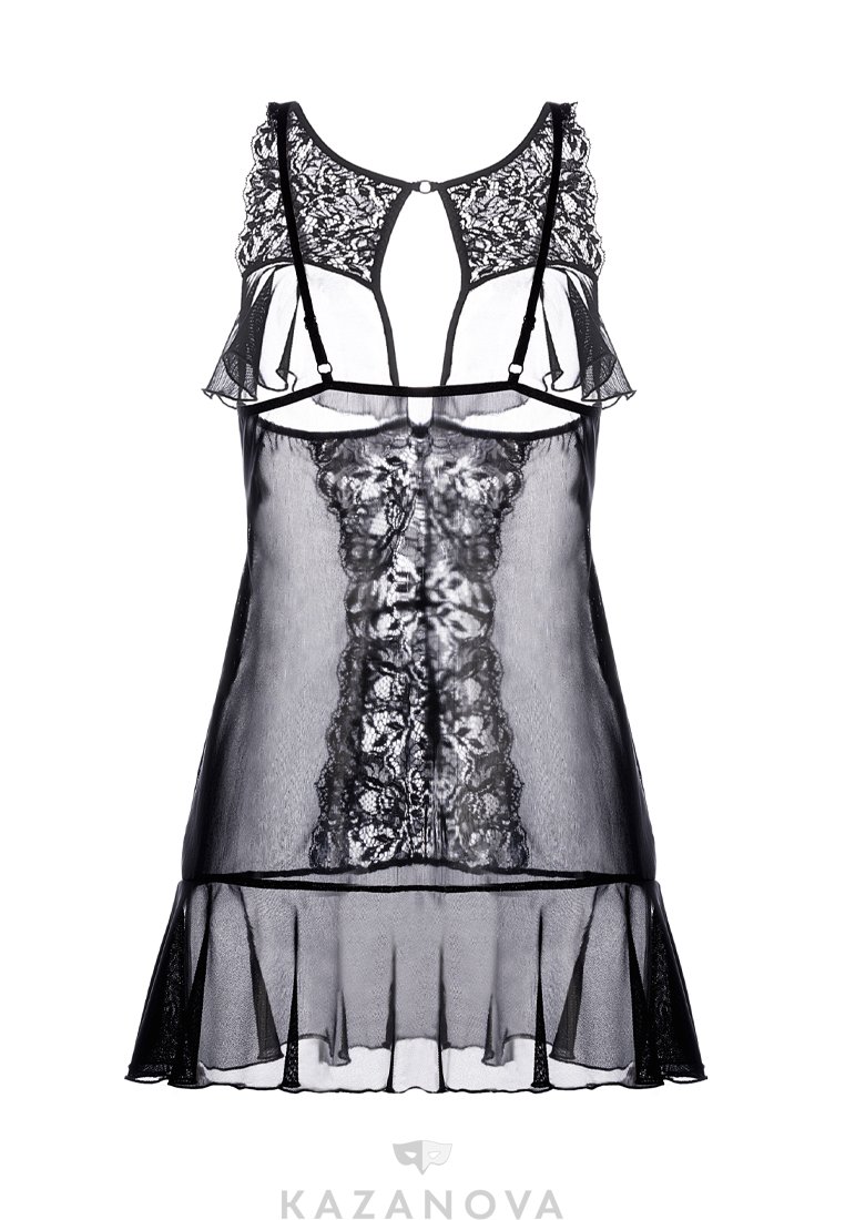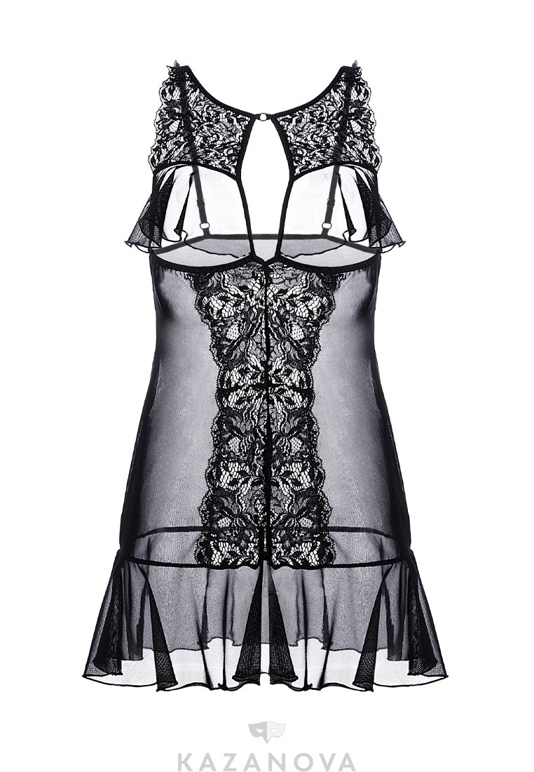 Комбинация Erolanta® Margarita с открытой грудью, из эластичной сетки со вставками кружева. Бюст и подол декорированы мягкими оборками. Регулируемые бретели.