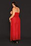 Комбинация изготовлена из красной ткани с кружевной отделкой. Комбинация с глубоким декольте, шнуровкой и разрезами акцентирует внимание на всех достоинствах фигуры. В комплект входят стринги.