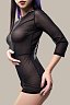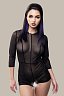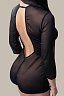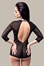 Деликатные вертикальные швы акцентируют внимание на плавных изгибах тела и создают силуэтную посадку. Горизонтальный шов визуально подчеркивает талию. Обтягивающие рукава добавляют фигуре грациозности. Застежка на шее, открытая спина и эротический доступ подчеркивают чувственный образ.