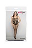 Комбинезон плотно облегает тело, подчеркивает грудь, привлекает внимание к тонкой талии и стройным бедрам. Есть доступ к интимным зонам.