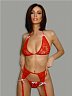 В комплект входит бюстгальтер с кружевными вставками, миниатюрные стринги и пояс для чулок.