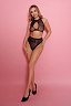 Нижнее белье сделано из полупрозрачной ткани и плотно облегает фигуру.