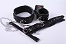 Комплект состоит из поводка, наручей и ошейника, которые легко регулируются по размеру.