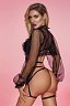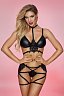 Дизайн и ультрасовременное сочетание стреп, эластичного матового wetlook и кружева впечатлит самых требовательных женщин. Мягкий бюстгальтер с регулируемыми бретелями и застежкой на спине можно носить как дуэтом с трусиками, так и дополнять образ съемным стрепом с кружевной вставкой и регулируемыми застежками. Болеро с объемными рукавами идеально дополняет комплект.