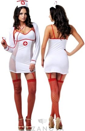 В комплект также входят головной убор, чулки в сетку и стетоскоп.