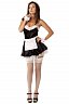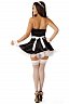 Попробуйте себя в качестве легкомысленной горничной в очень коротком платье. Плечи открыты, что подчеркивает хрупкость и женственность. Подъюбник делает платье пышным. Головной убор, манжеты, украшение на шею и фартучек делают образ целостным.