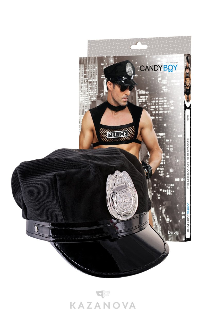 Костюм полицейского: топ, боксеры, митенки, очки, наручники и фуражка
