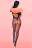 Комбинезон из мелкой и крупной сетки плотно облегает тело, подчеркивает грудь, тонкую талию и бедра, а также оставляет доступ к интимным зонам.