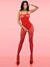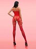 Комбинезон из мелкой и крупной сетки плотно облегает тело, подчеркивает грудь, тонкую талию и бедра, а также оставляет доступ к интимным зонам. Сетка имитирует корсет и чулки с поясом и пажами.