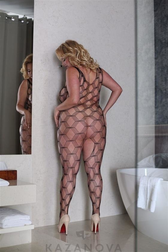 Комбинезон плотно облегает тело, подчеркивает грудь, привлекает внимание к тонкой талии и стройным бедрам. Есть доступ к интимной зоне.