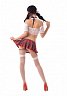 Кокетливое сочетание топа и юбки в клетку вызовут неистовое желание даже у искушенного любовника. Полупрозрачный топ с отрытыми плечами и шнуровкой в зоне декольте позволяет продемонстрировать пышную грудь. Миниатюрная юбка со складками привлекает внимание к стройным бедрам и зрительно удлиняет ноги. Особенно соблазнительно она смотрится с белыми чулками и туфлями на каблуке. Образ завершает фривольный галстук.
