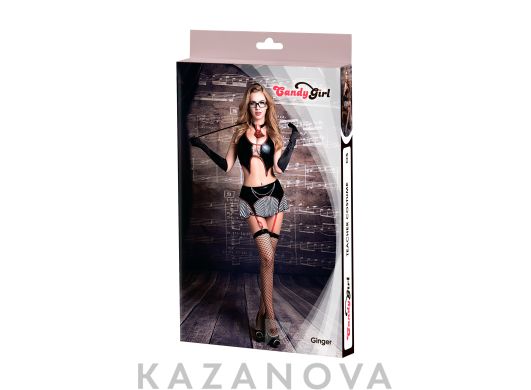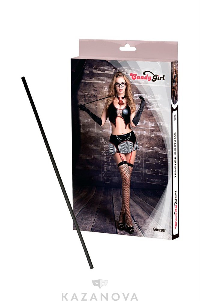 Костюм учительницы Candy Girl Ginger - топ, юбка, трусики, перчатки, галстук, чулки, очки, указка