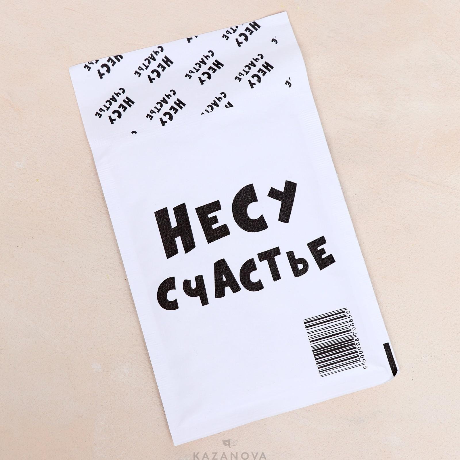 Конверт с вдохновляющей надписью: «Несу счастье» подойдет для упаковки денежных купюр или мелких сувениров. Конверт сделан из бумаги, а внутренний слой – из пузырьковой пленки.