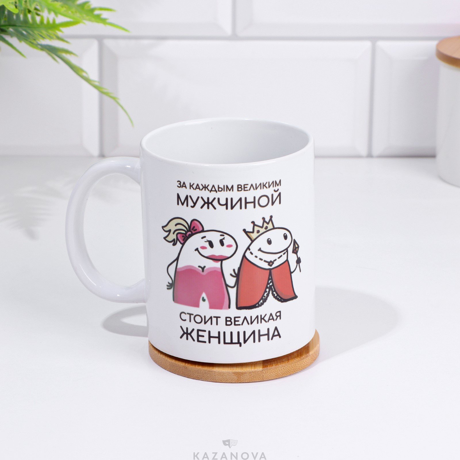 Кружка "За каждым мужчиной" белая с нанесением 320 мл