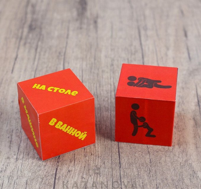 В комплекте два игральных кубика, где на одном написаны места, подходящие для секса, а на втором – позиции.