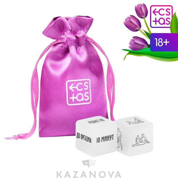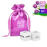 Внутри мешочка находятся два кубика: один из них подскажет позу, а другой – время, за которое предстоит заняться сексом. Кубики светятся в темноте.