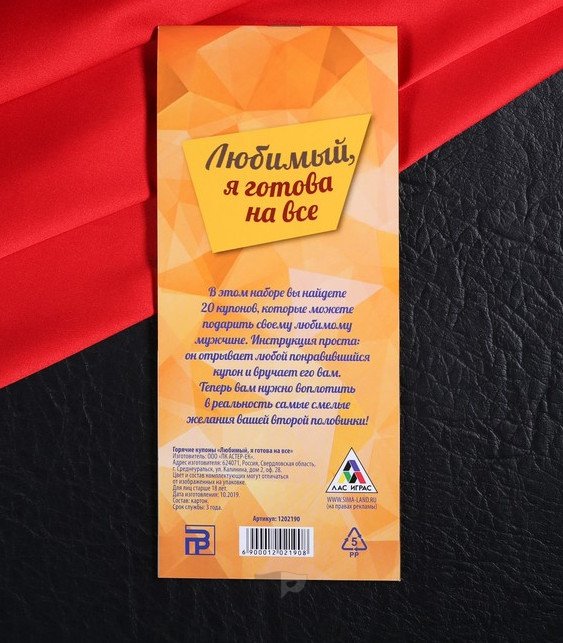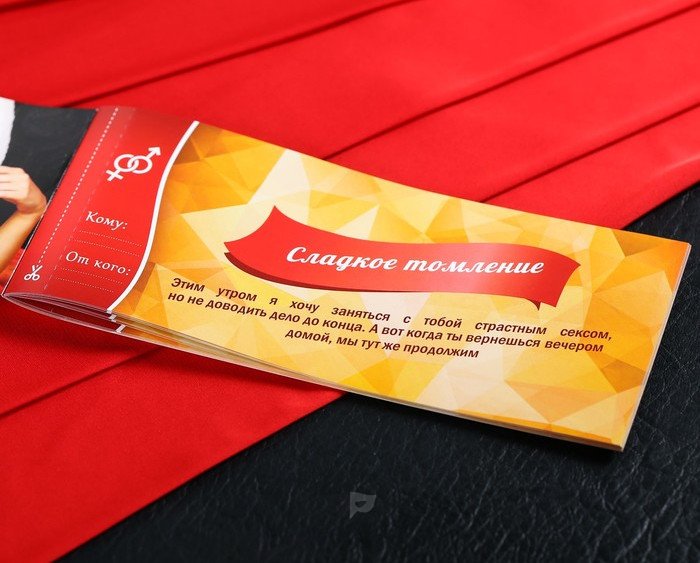 Он отрезает любой понравившийся купон по линии реза и вручает его вам. Теперь лишь нужно воплотить в реальность самые смелые желания вашей второй половинки!