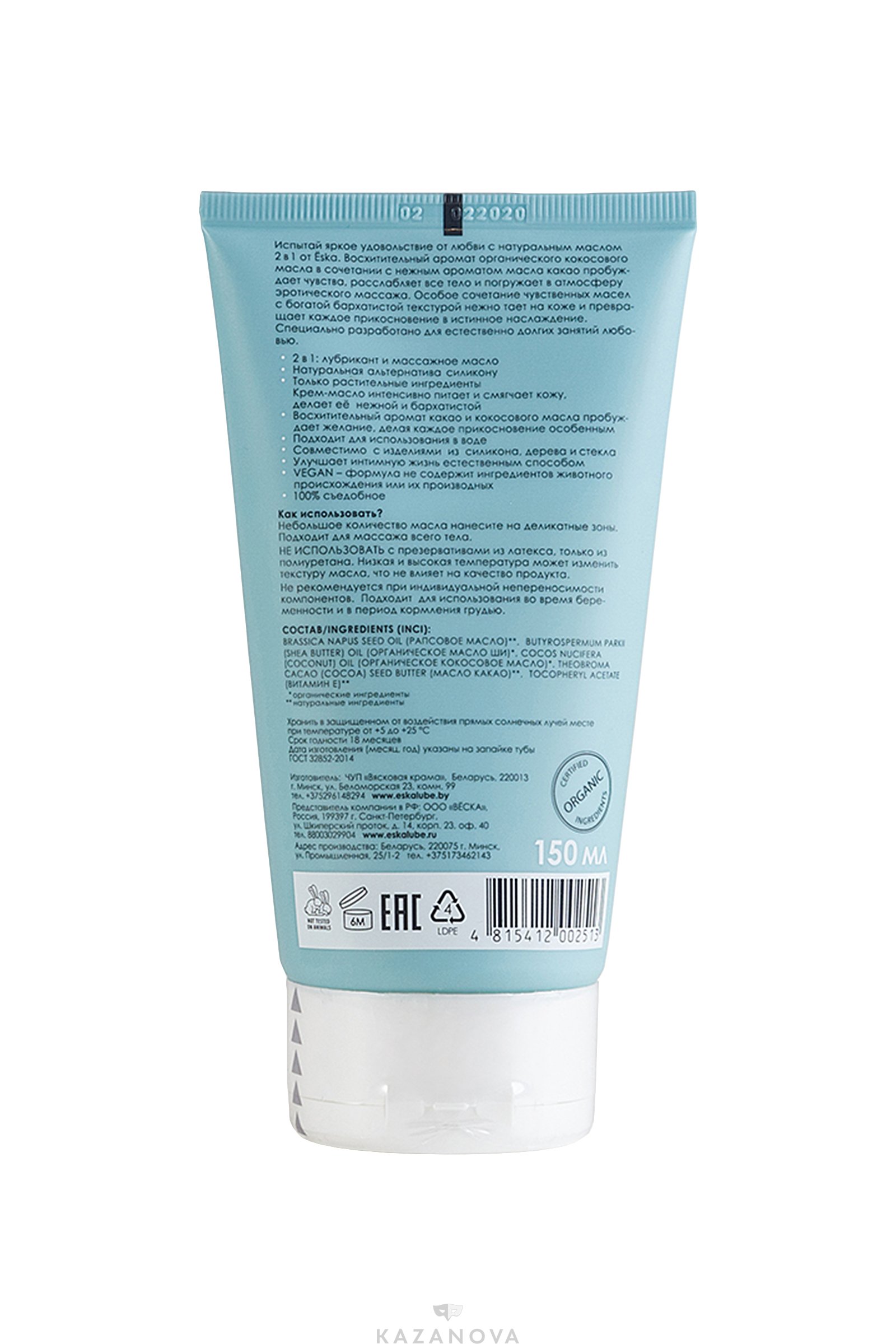Нравится использовать натуральную косметику? Тогда любрикант Eska 2 в 1 – отличный выбор. Средство состоит полностью из растительных компонентов и является Vegan friendly.