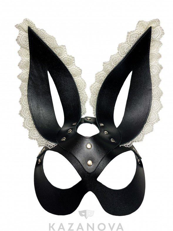 Маска «Зайчик» из коллекции «Арсенал» изготовлена из натуральной кожи и декорирована белым кружевом.