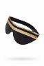 Черная маска изготовлена из натуральной кожи и декорирована золотой полосой. Размер универсальный, аксессуар подстраивается под индивидуальные параметры. Маска не пропускает свет и идеально подходит для зрительной депривации.
