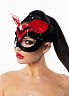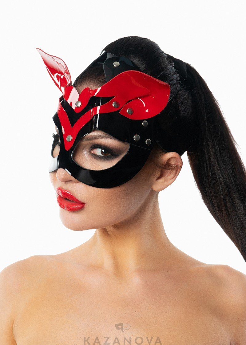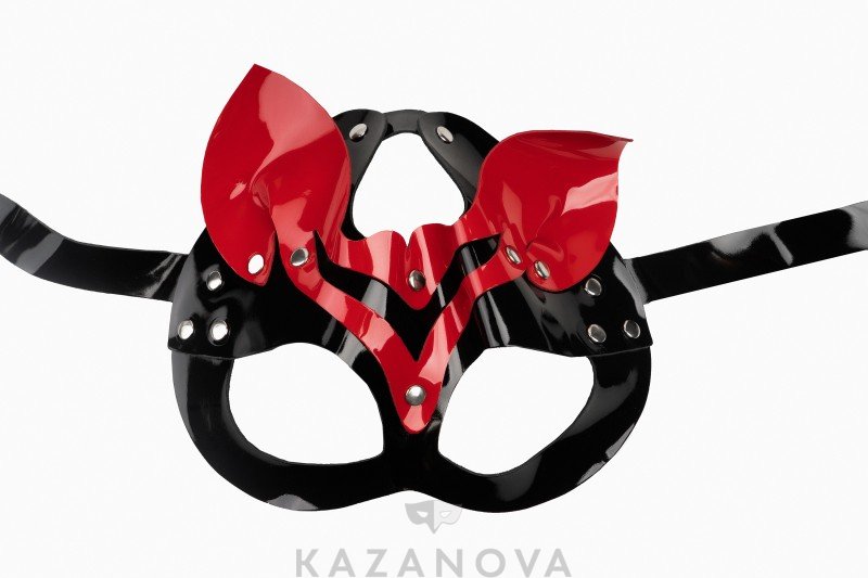 Маска Джага Джага с ушками из натуральной кожи лаковая красно-черная