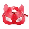 Маска красного цвета изготовлена из искусственной кожи и декорирована металлическими элементами.
