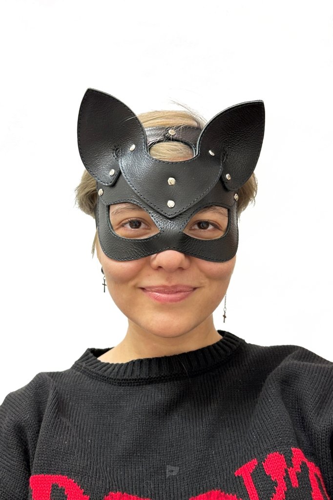 Маска кожаная с ушками с подкладом и прошивкой 211