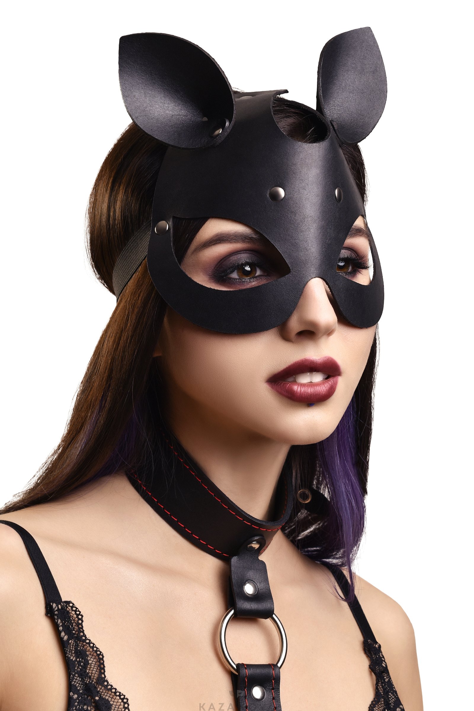 Маска Pecado BDSM Кошка натуральная кожа черная