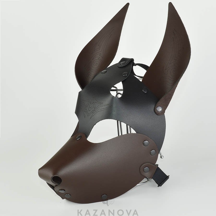 Коричневая маска «Дог» из коллекции Sitabella изготовлена из натуральной кожи.