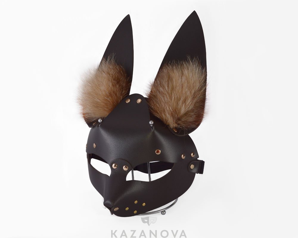 Маска Sitabella "Зайка" коричневая из натуральной кожи с мехом