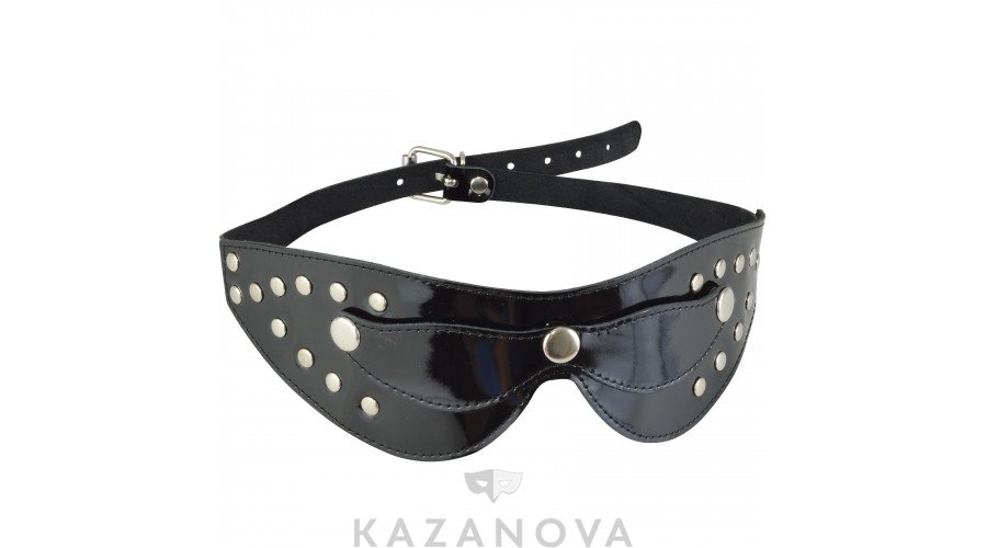 Маска со съёмными шорами из натуральной кожи лаковая черная