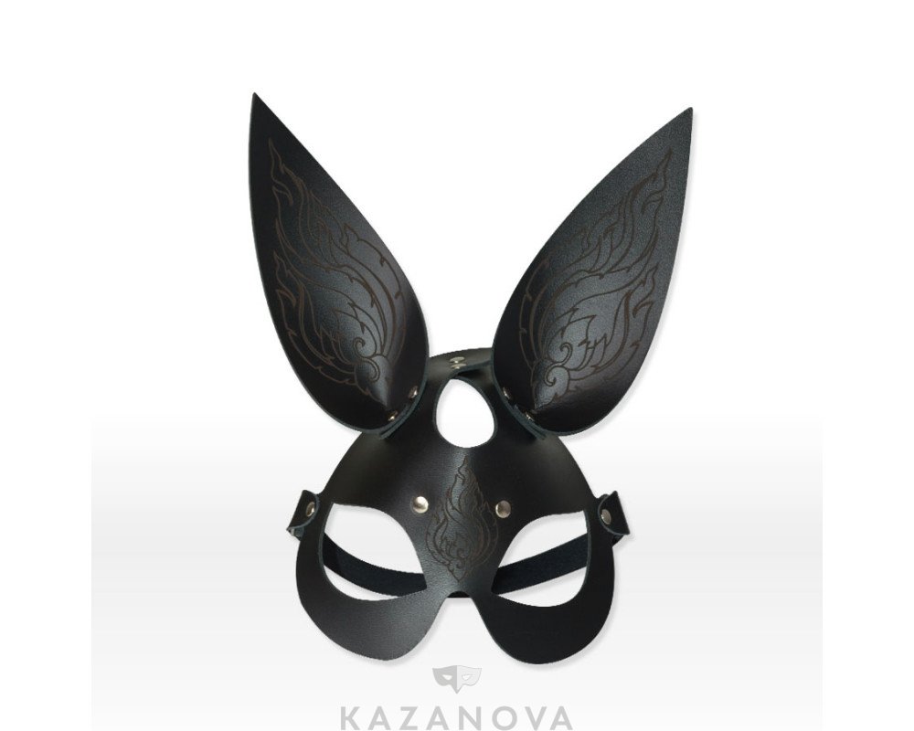 Маска "Зайка" открытая из натуральной кожи с узором черная