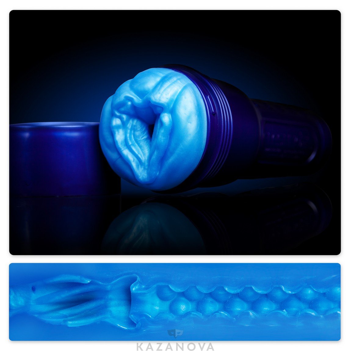 Секс-игрушка синего цвета изготовлена из киберкожи. Этот уникальный материал позволяет воплощать самые смелые фантазии, подстраивается под температуру тела и балует особенной нежностью и упругостью. Эластичная манжета помещена в пластиковый корпус, напоминающий фонарик и не вызывающий любопытных взглядов.