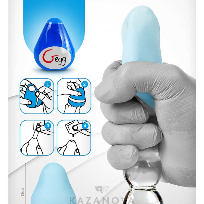 Gegg Blue с первого взгляда напоминает классические строкеры в виде яйца, помещенные в пластиковый корпус, но в отличие от «яиц», секс-игрушка сделана в виде пирамиды – такая форма обеспечивает более интенсивную стимуляцию. Внутри мастурбатора находится уникальная и выразительная структура в виде переплетений ребрышек и усиков разной высоты.