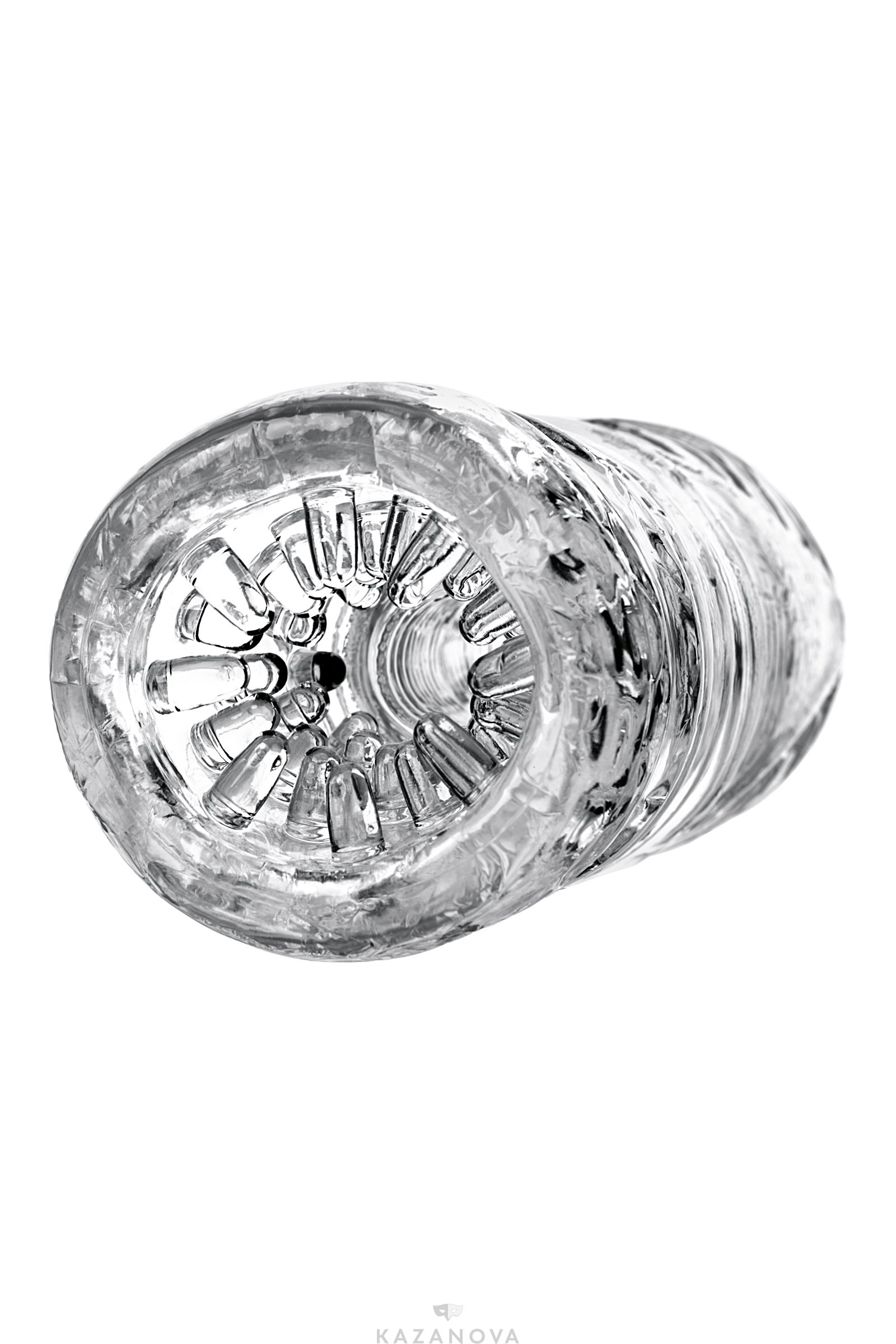 Мастурбатор полностью прозрачный, и ты можешь наблюдать за тем, что происходит. Мягкий корпус позволяет контролировать силу сжатия.