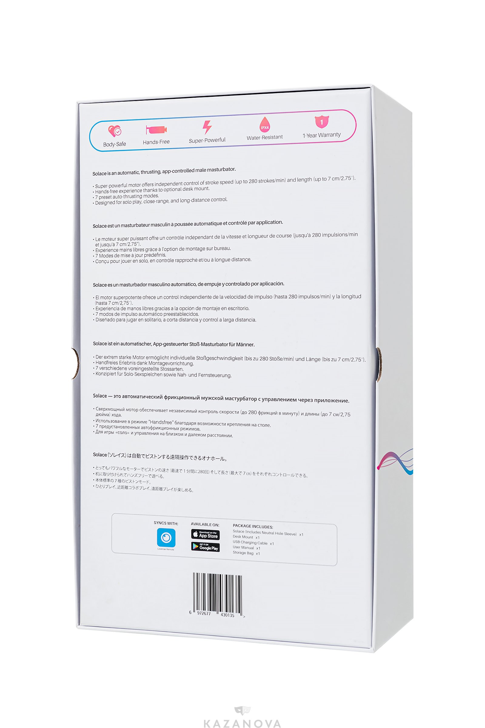 Устойчивое настольное крепление удерживает Solace на месте и регулируется в пределах 180° в зависимости от того, как ты хочешь играть – сидя за компьютером или стоя за столом. Мастурбатор легко использовать и без крепления – на диване, лежа в кровати или передав устройство партнерше.