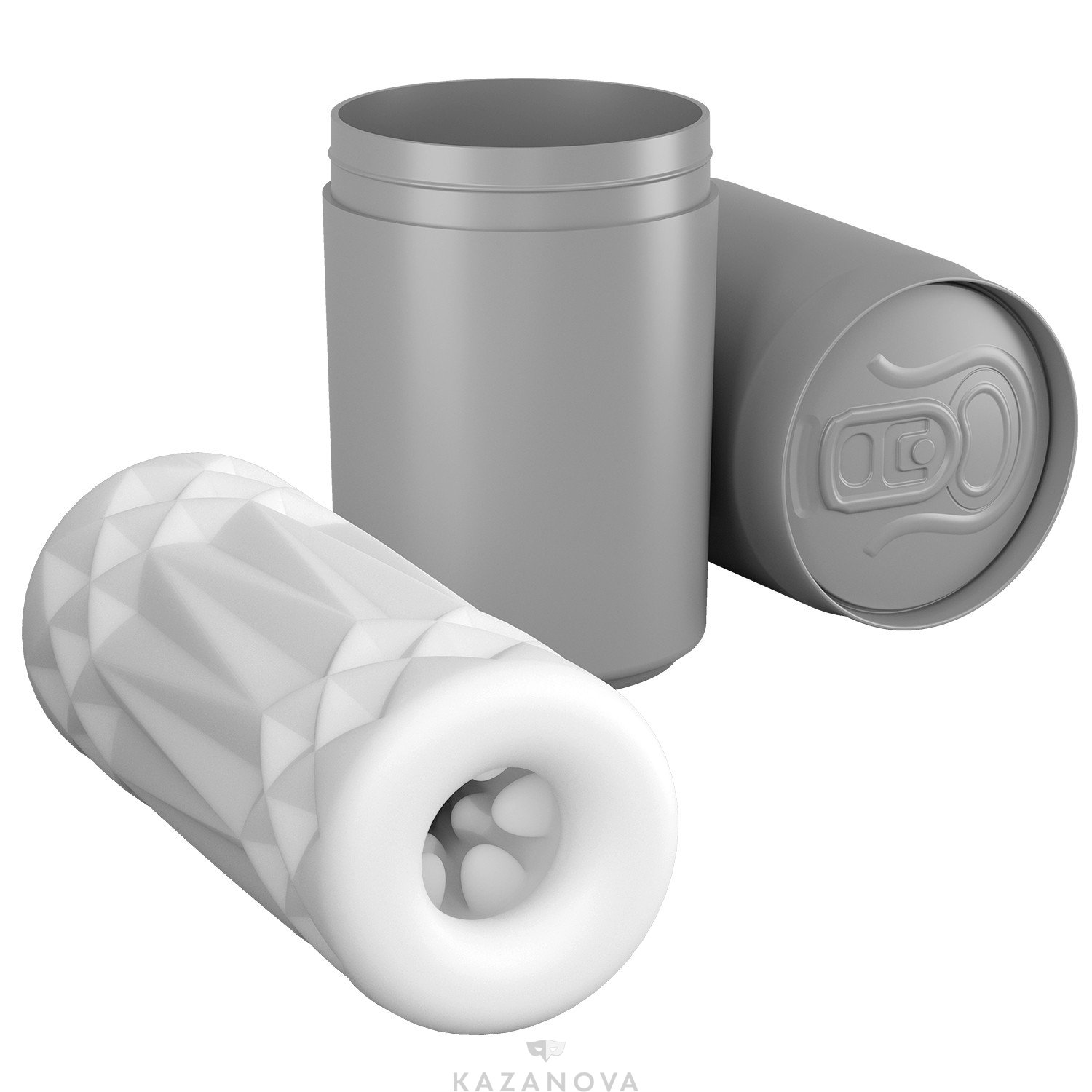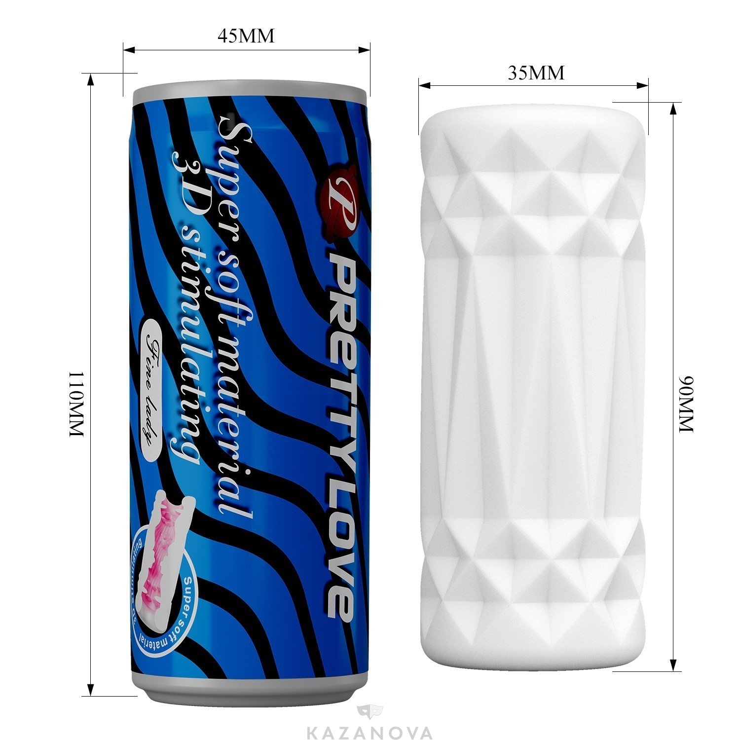Корпус секс-игрушки в виде банки напитка изготовлен из пластика. В корпусе находится манжета из эластомера.