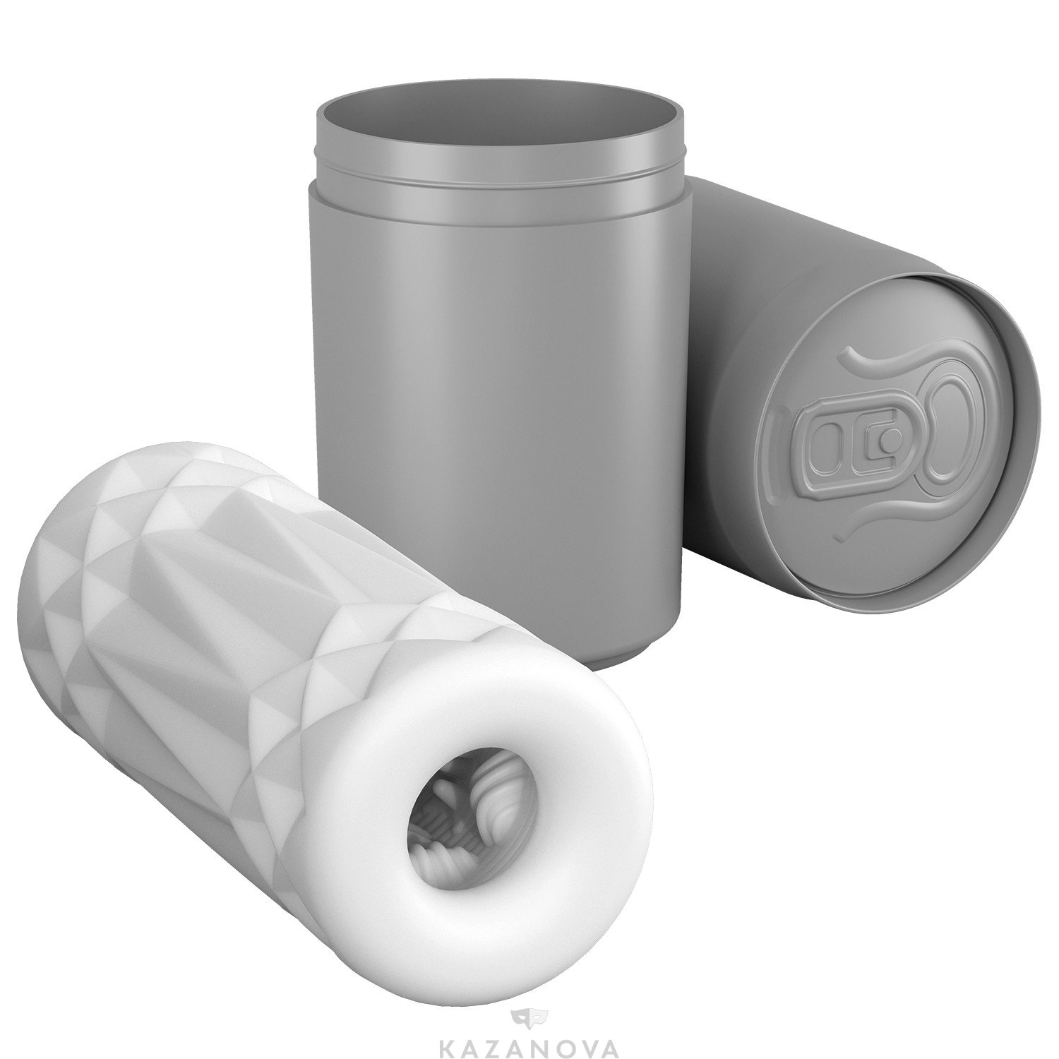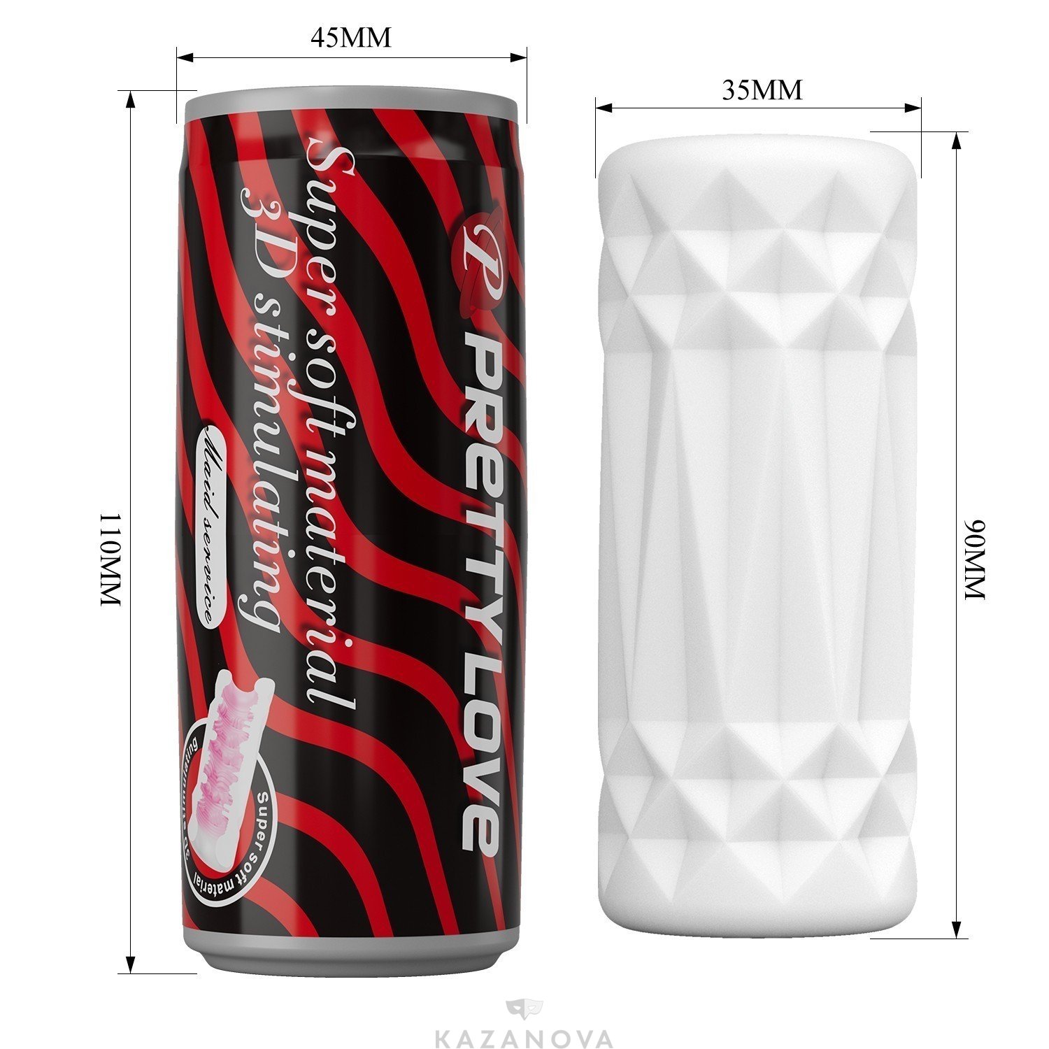 Корпус секс-игрушки в виде банки напитка изготовлен из пластика. В корпусе находится манжета из эластомера.