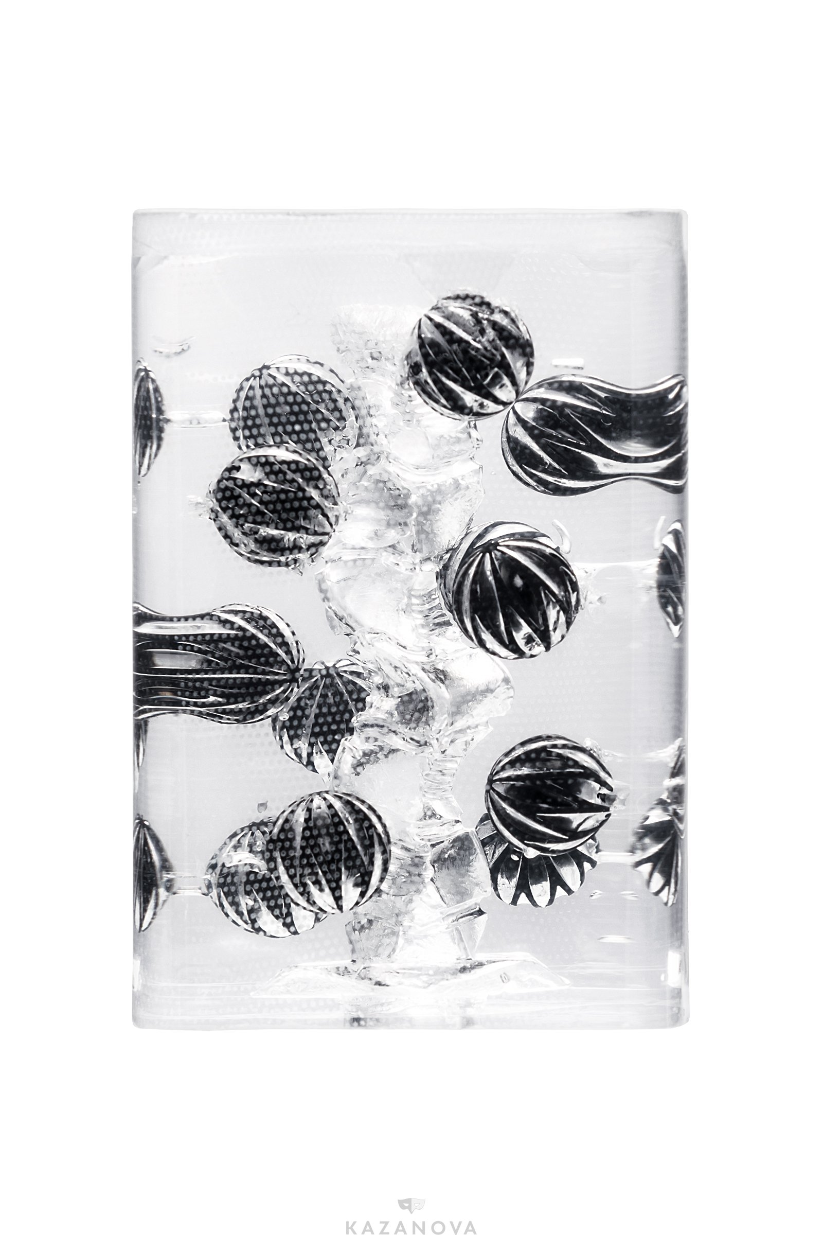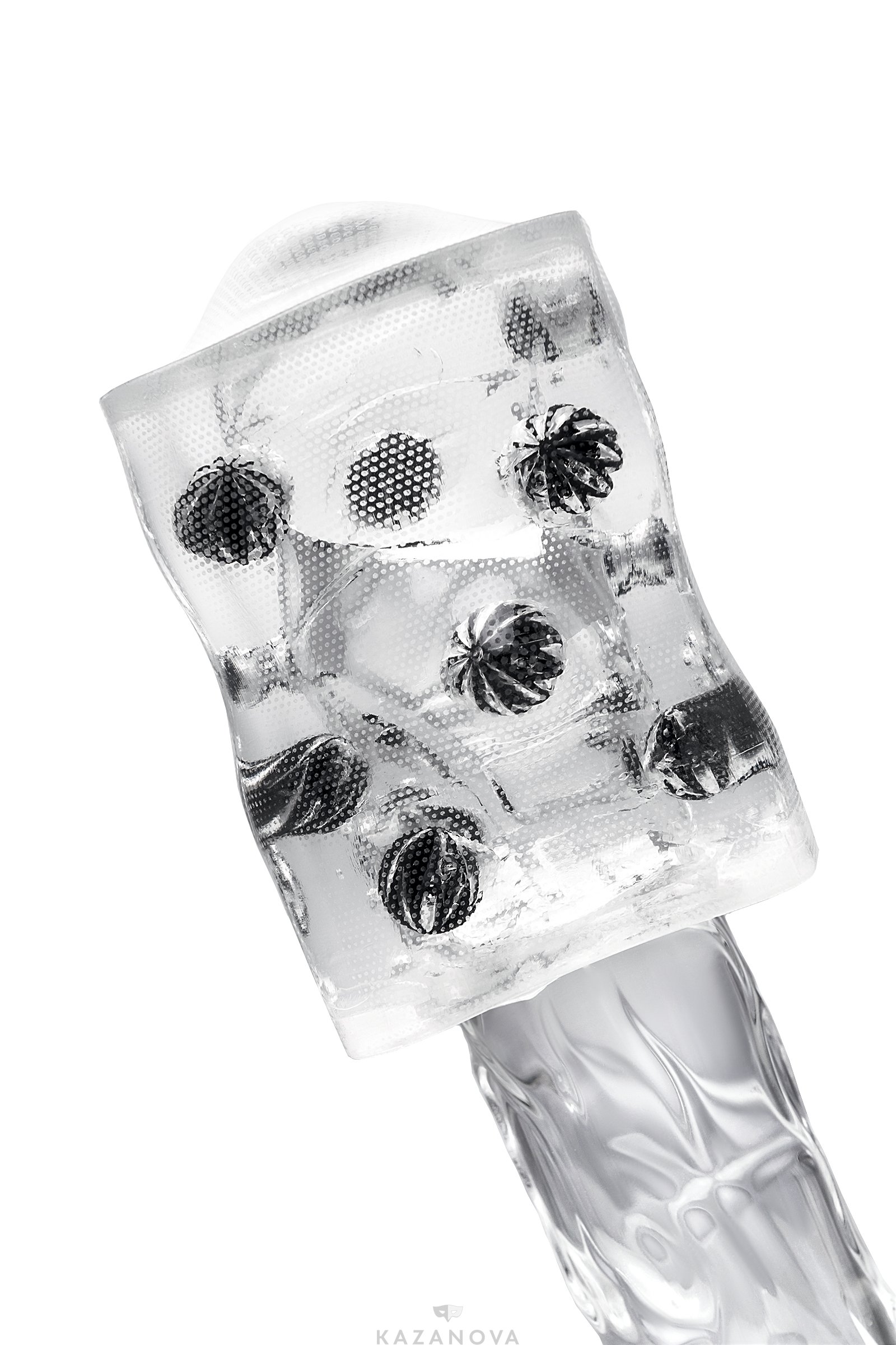 Внутри прозрачного мастурбатора находятся объемные шарики. Эти шарики отлично ощущаются сквозь слой нежного эластомера, плавно перемещаясь по всей длине полового члена и создавая возбуждающую стимуляцию всех его участков.