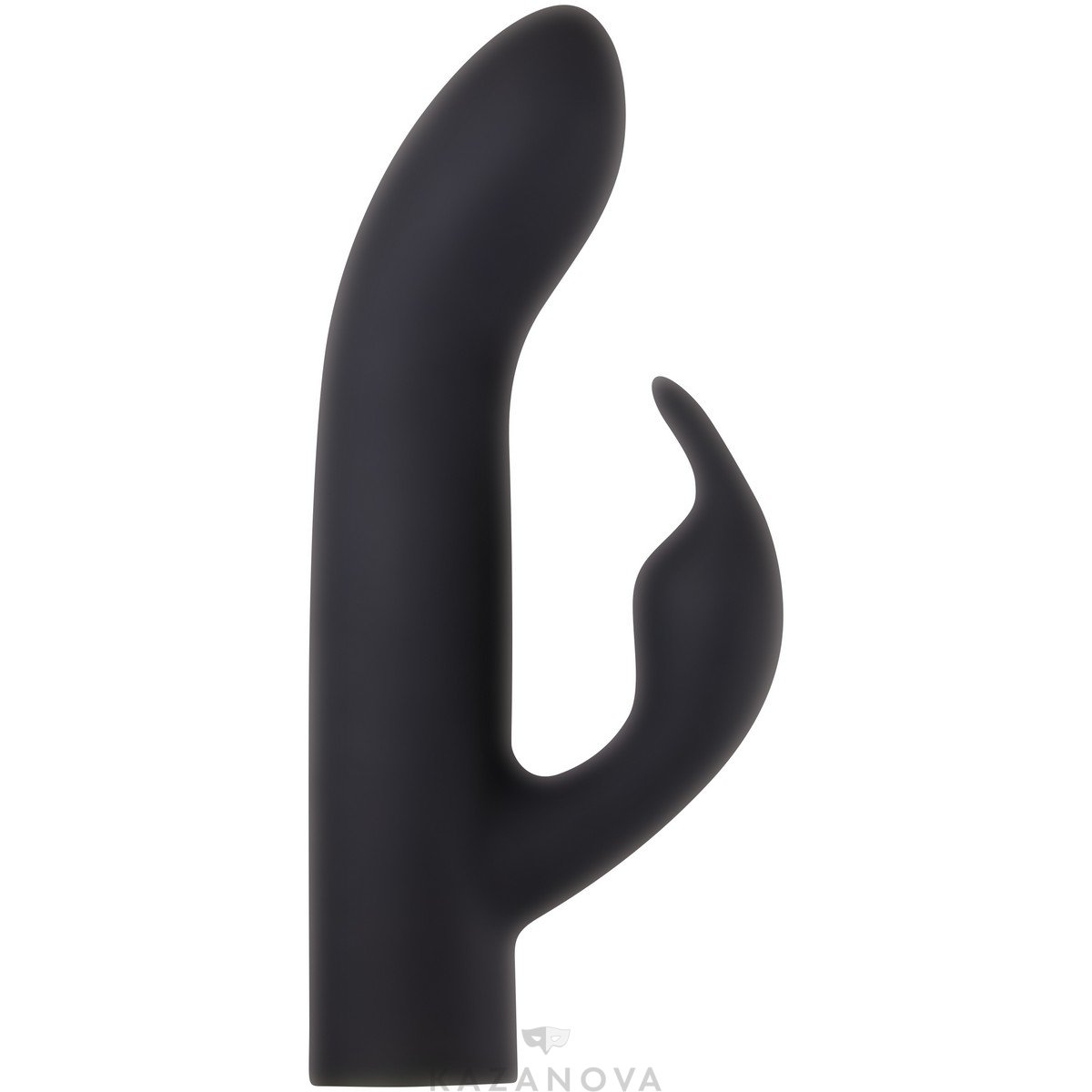 Насадка с изогнутой погружной частью и внешней частью в виде кролика предназначена для одновременного воздействия на вход во влагалище, зону G и клитор.