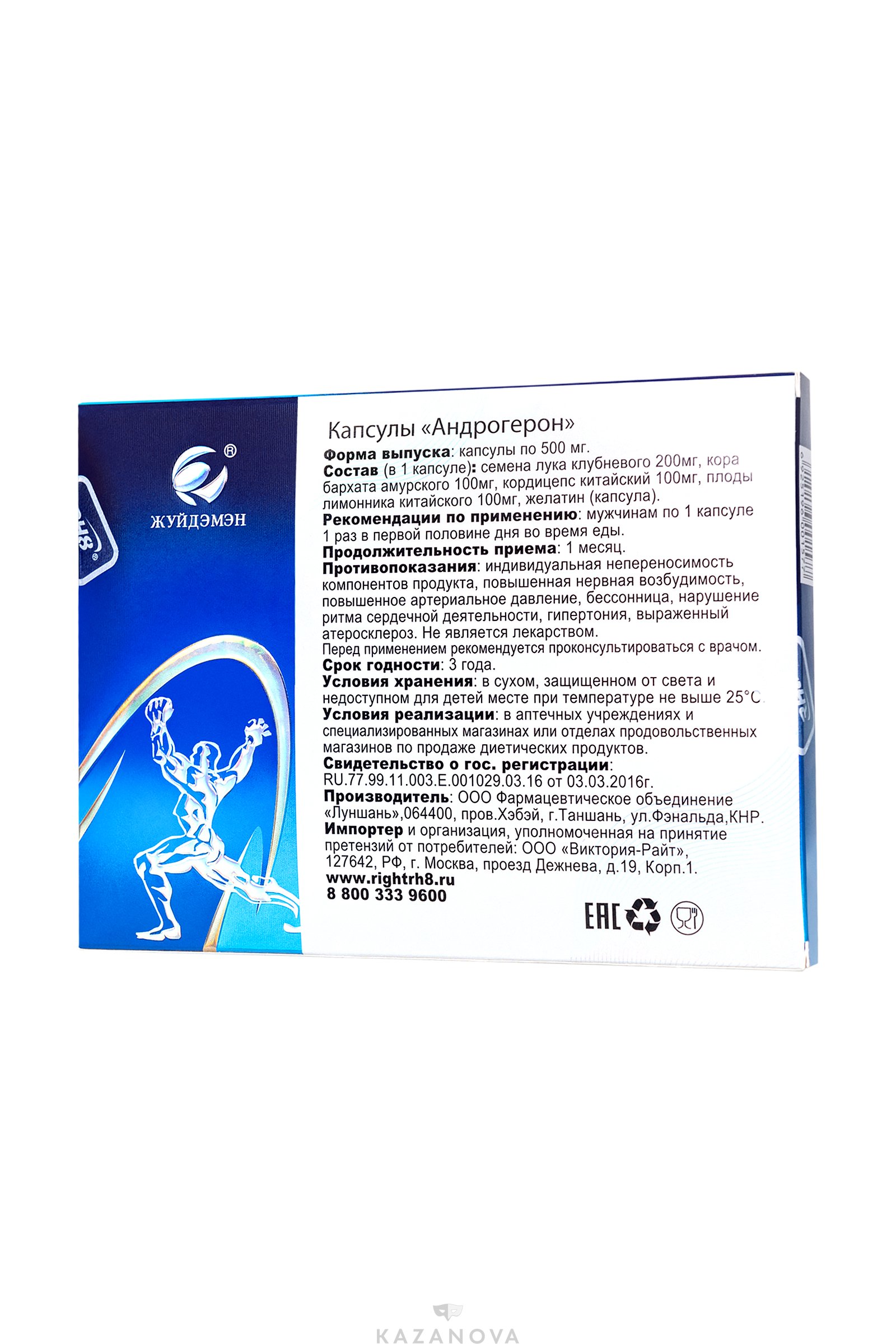 Мужской сексстимулятор Андрогерон 12 капсул, Годен 4-6 месяцев