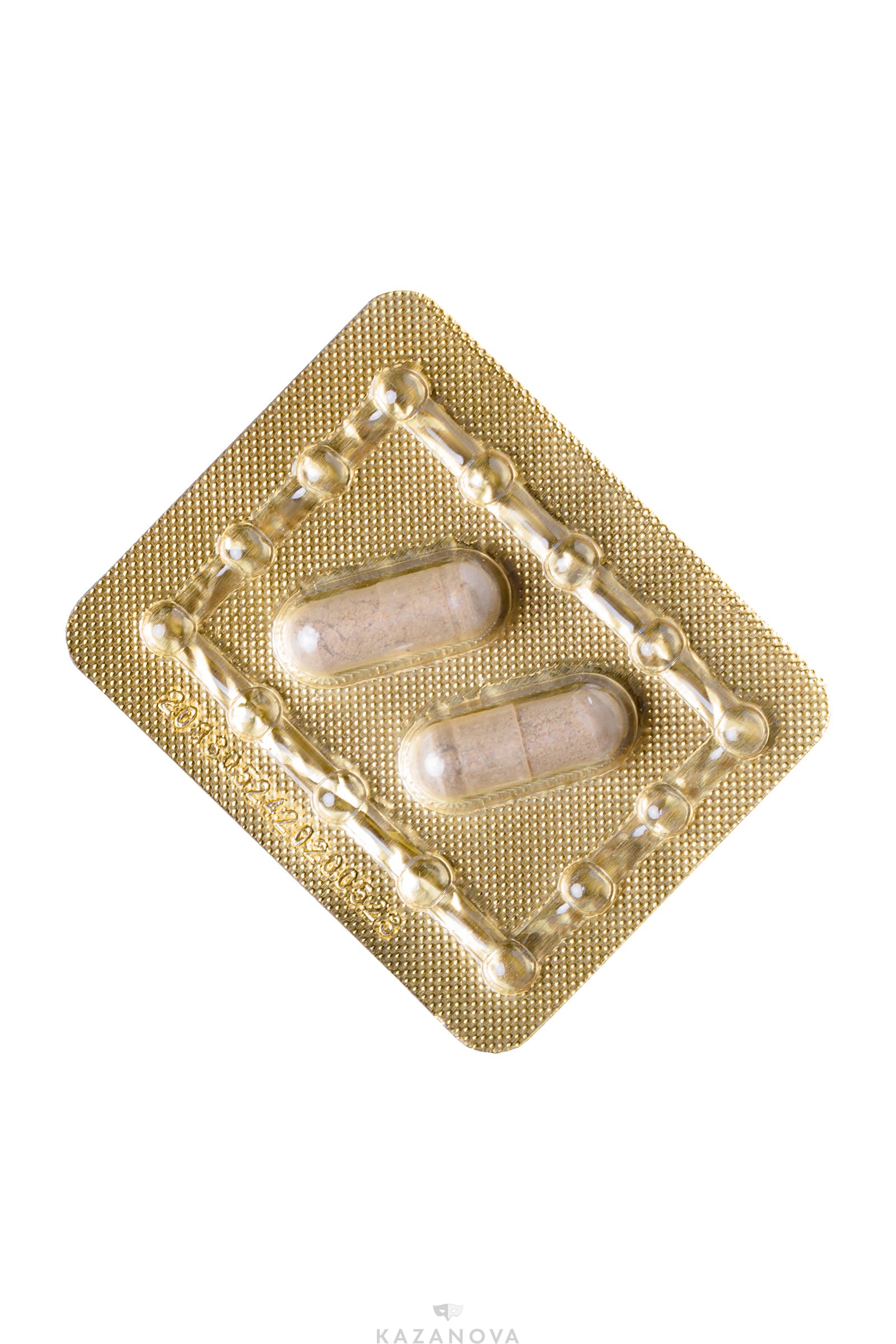 Состав: корневище альпинии - 20 мг, корень женьшеня - 50 мг, плоды финика - 25 мг, гриб линчжи - 25 мг, корень диоскореи - 30 мг, трава горянки - 50 мг, плоды дерезы китайской - 50 мг, кордицепс китайский - 50 мг.