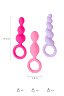В комплект входят 3 втулки разного диаметра с рельефной поверхностью. Каждая игрушка оснащена специальной ручкой-ограничителем в виде кольца.