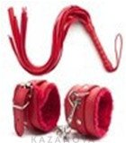 Наручники и флогер изготовлены из искусственной кожи красного цвета.