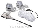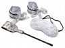Набор BDSM текстильный серебристый (наручнинки, маска, стек)
