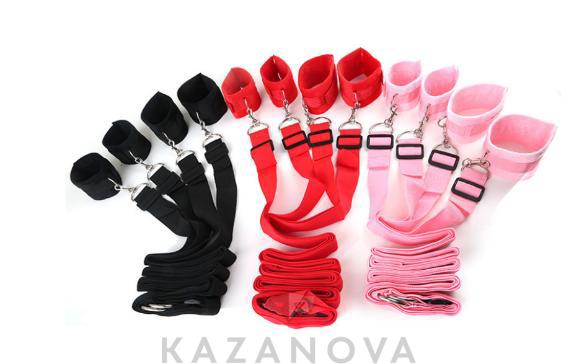 Набор бондажный для кровати текстильный (наручники, поножи, стропы)