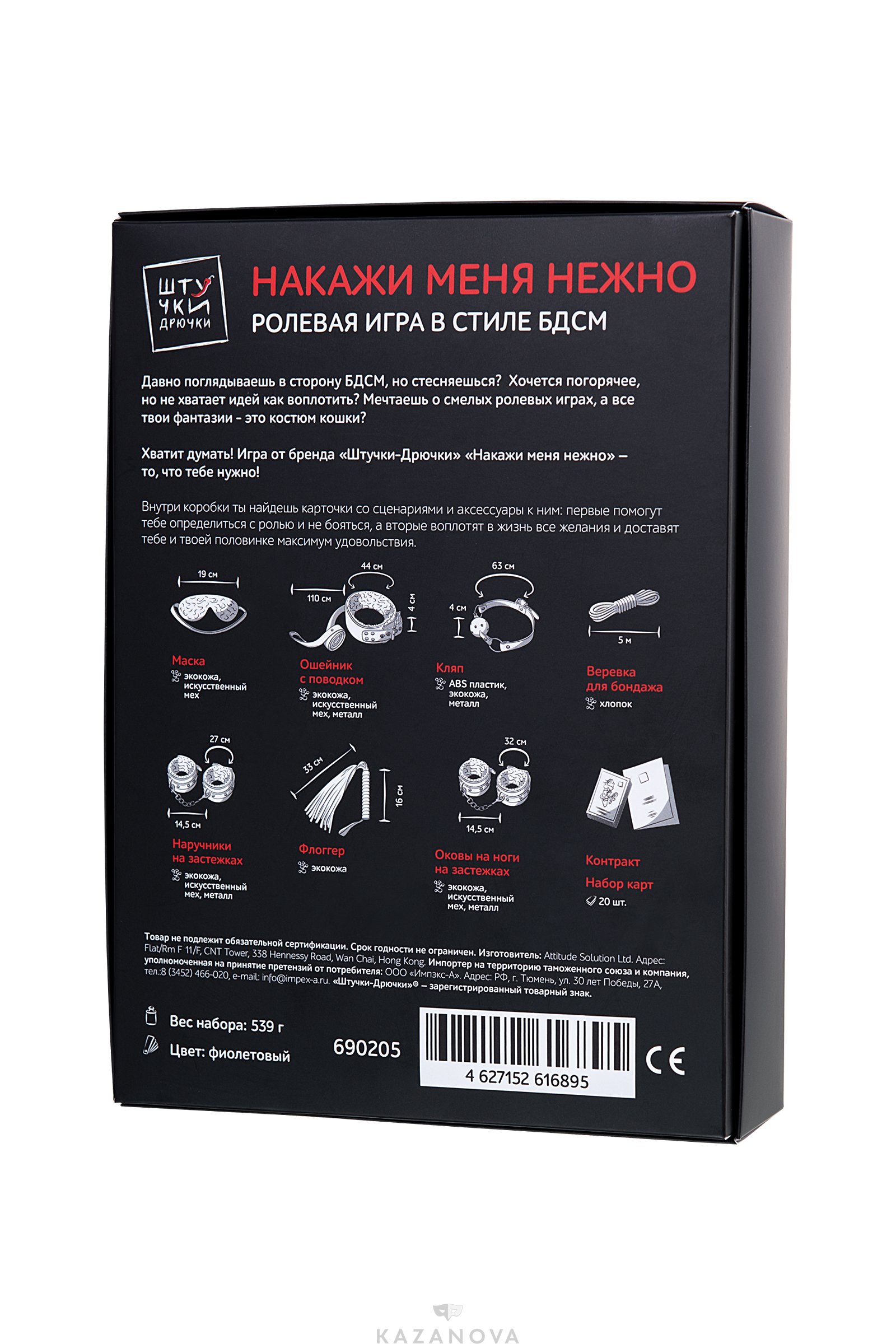 - В комплекте: ошейник, наручи, поножи, кляп, веревка и флогер