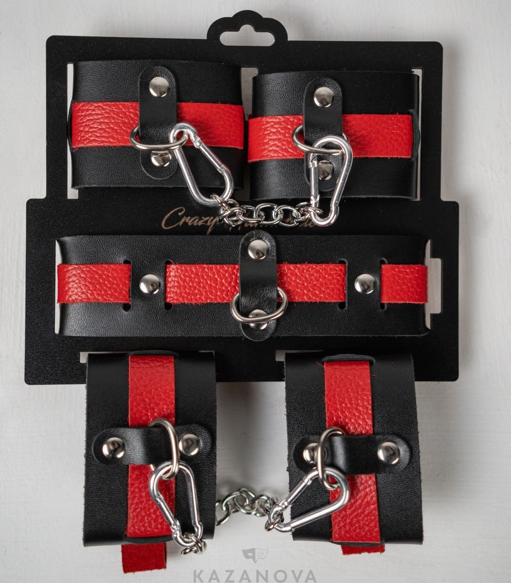 Набор Crazy Handmade из натуральной кожи чёрно-красный (наручи, поножи, ошейник)