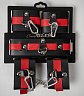 Бондажный набор изготовлен из натуральной кожи черного и красного цвета, декорирован металлическими элементами.